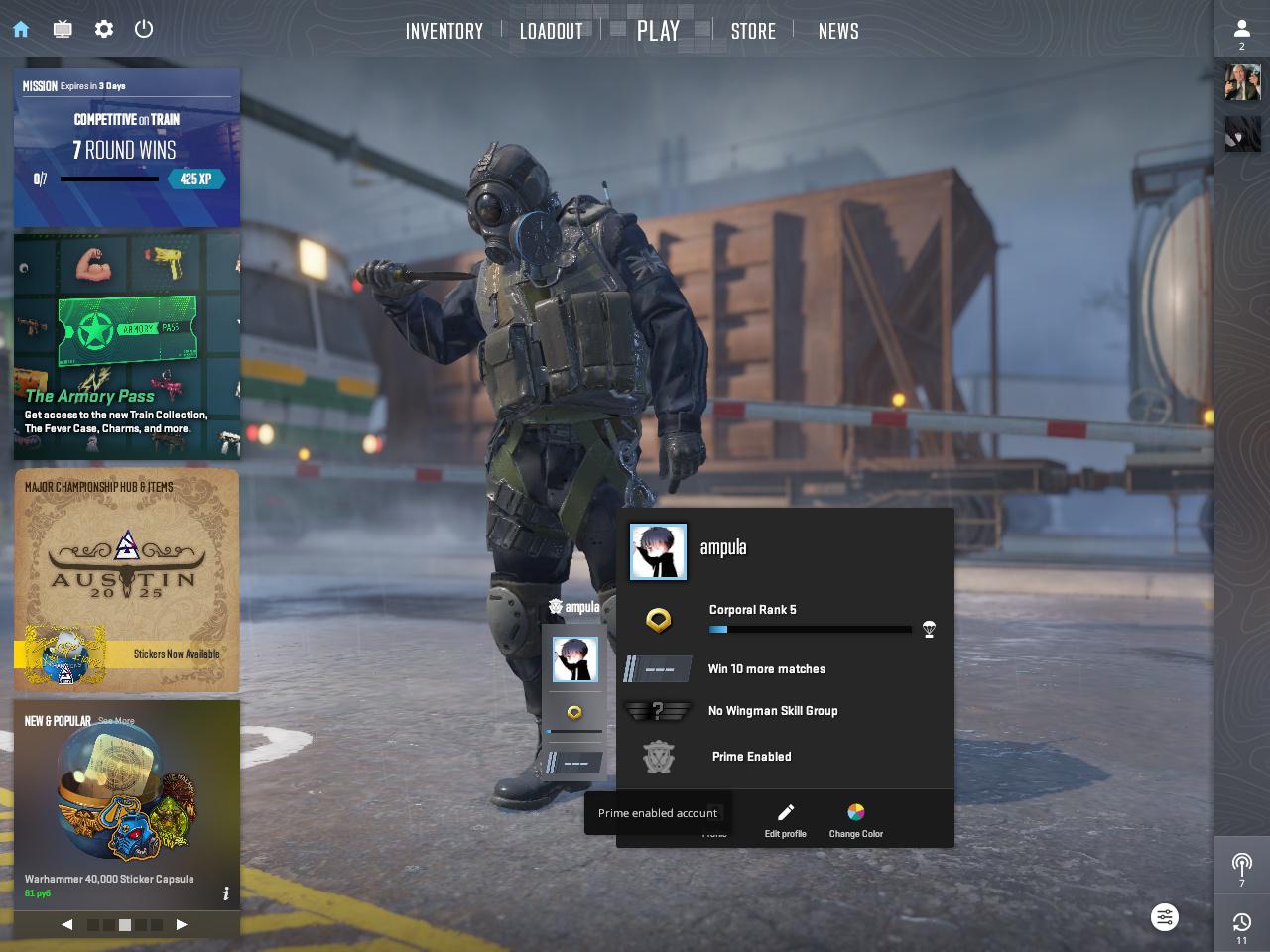 ⭐️Звание: Gold Nova 1; 🌟Prime Status: Есть; ⏱Часов в игре: 1985;